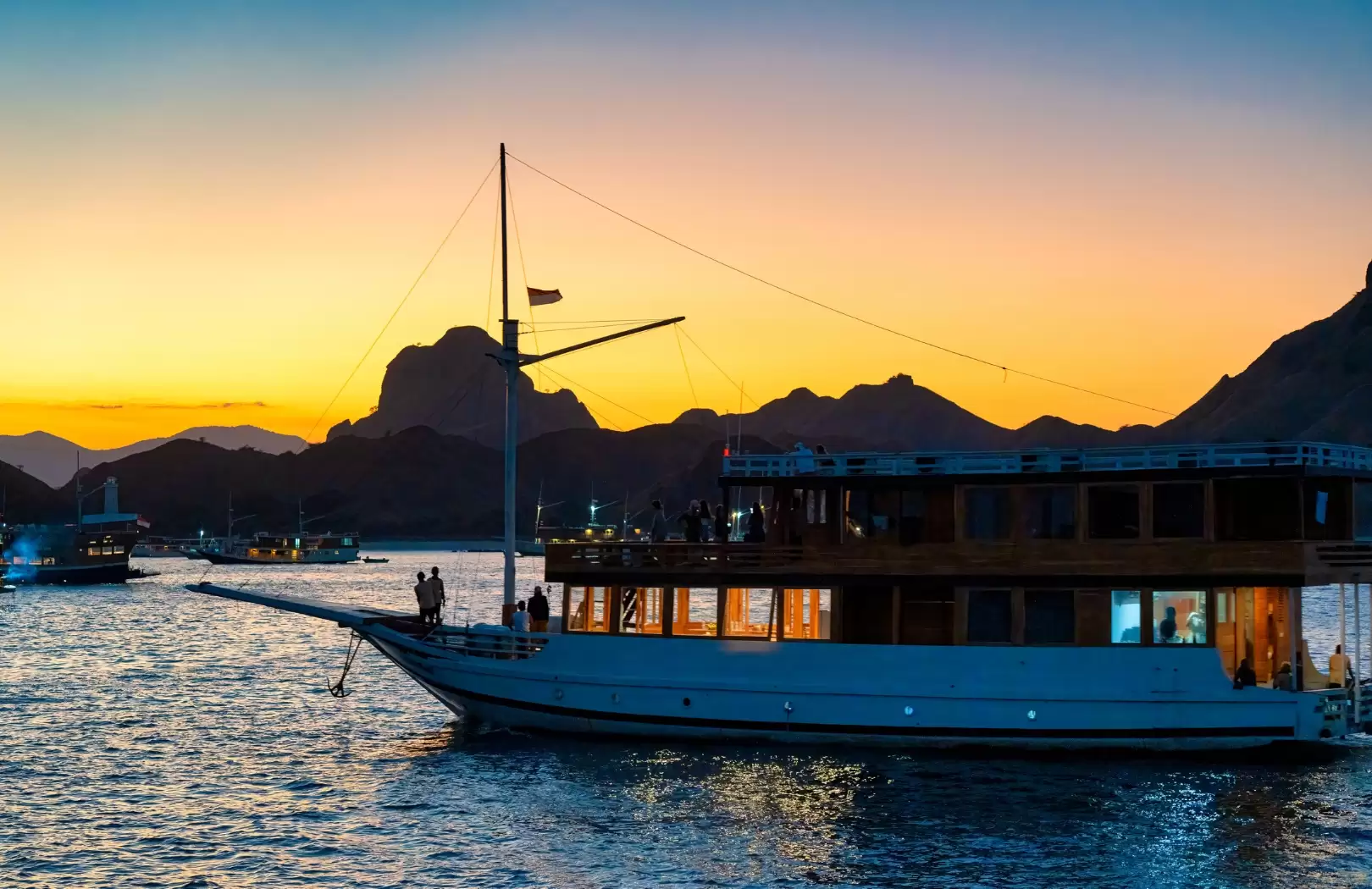 - Jour 1 : Embarquement à Labuan Bajo, navigation vers l’île de Padar – randonnée panoramique et dîner au coucher du soleil à bord.
